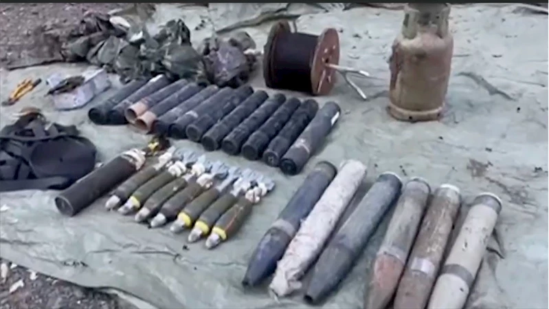 "6 çok namlulu roketatar mühimmatı, 8 tuzaklanmış havan mühimmatı, havan mühimmatına ait 12 taşıma kapsülü, 1 kutu makineli tüfek mühimmatı, çok miktarda yaşam malzemesi ve ekipmanı ile temizlik malzemesi."