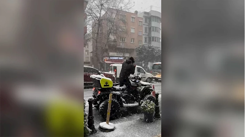 İSTANBUL (AA) - Adnan Menderes Bulvarı'nda bir kişi, kar yağışının etkili olduğu sırada arazi aracı ATV'ye binen arkadaşını cep telefonuyla çekmeye başladı.