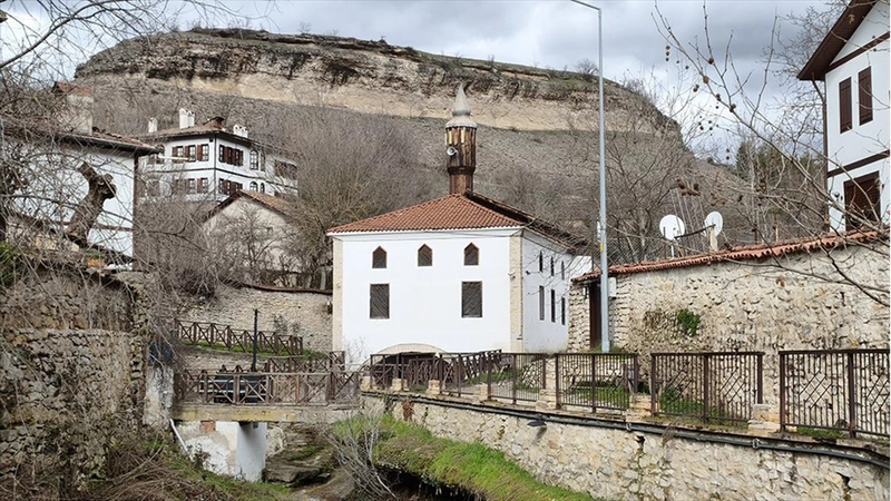Safranbolu'da altından dere geçen tarihi cami dikkati çekiyor