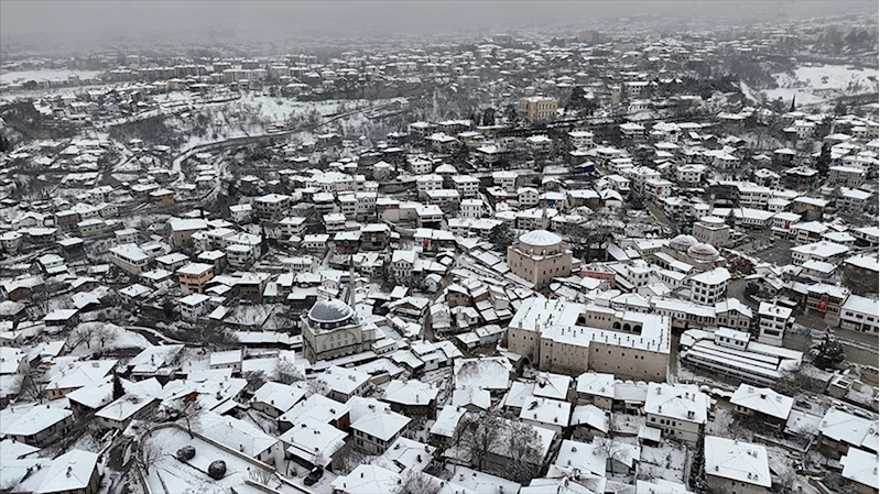 Ayrıca Safranbolu'daki kar manzarası dronla görüntülendi.
