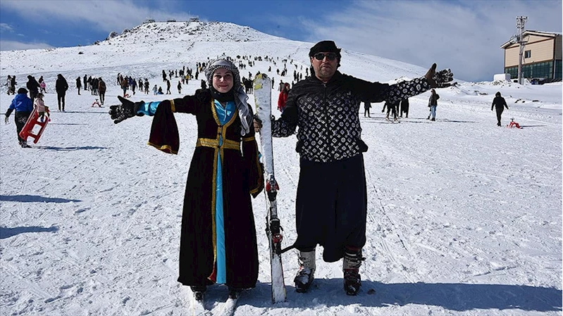 Bu kapsamda renkli kıyafetleri ile kayak merkezine renk katan vatandaşlardan bazıları ise Siverek şalvarı olarak bilinen kıyafetleriyle kayarak farklı görüntüler oluşturuyor.