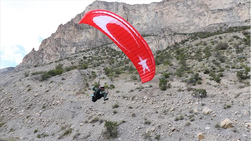 Şampiyon yamaç paraşütçü, hazırlıklarını Uzundere'nin sarp dağlarında yapıyor