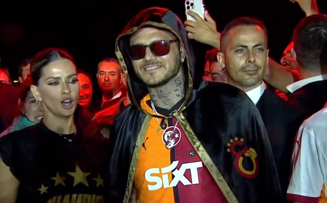 Galatasaray’ın Arjantinli futbolcusu Mauro Icardi, kutlamalarda kendisiyle özdeşleşen şarkıcı Simge’nin ’Aşkın olayım’ şarkısı ve pelerin giyerek sahneye geldi. Sevgilisiyle sahneye çıkan Icardi’ye taraftar yoğun ilgi gösterdi. ’Şampiyon Cimbom’ tezahüratları yapan Mauro Icardi, taraftarlara da üçlü çektirdi.