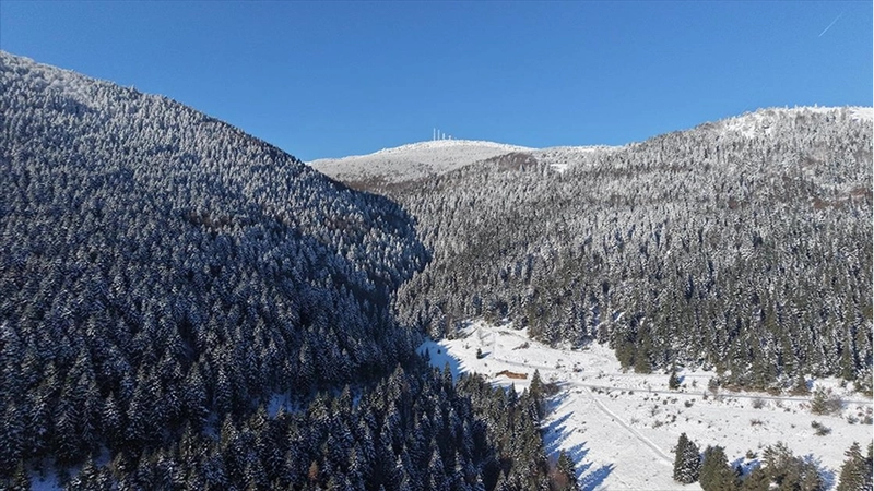 SAMSUN (AA) - Yukarı Isırganlı ile Kızlan mahalleleri arasında bulunan ormanlar, kar yağışının ardından beyaz örtüyle kaplandı.