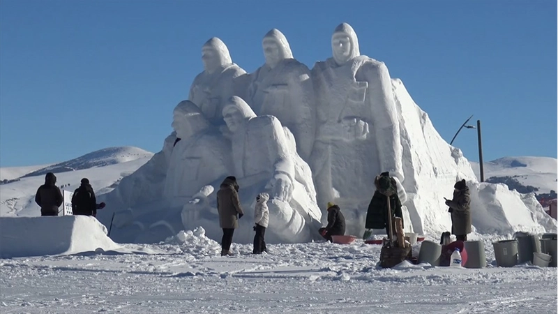 Kafkas ve Atatürk üniversitelerinden 6 kişilik ekiple Allahuekber Dağları'nda 111 yıl önce şehit olan askerleri temsilen yapılan kardan heykellerin açılışı yarın gerçekleştirilecek.