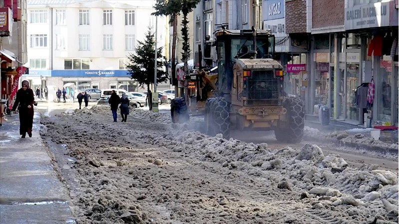 Sarıkamış'ta tehlike saçan kar ve buzlar ilçe dışına taşınıyor