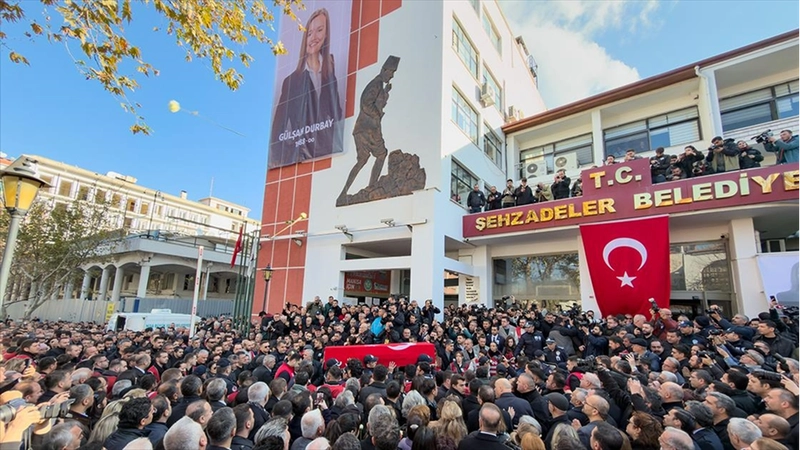 MANISA (AA) - Durbay'ın Türk bayrağına sarılı naaşı, Şehzadeler Belediyesi hizmet binası önündeki törenin ardından Hatuniye Camisi'ne götürüldü, camide Kur'an-ı Kerim okundu, dualar edildi.