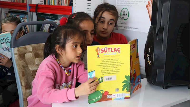 İlk kez gezici kütüphaneyle buluşan çocuklar, büyük mutluluk yaşadı.