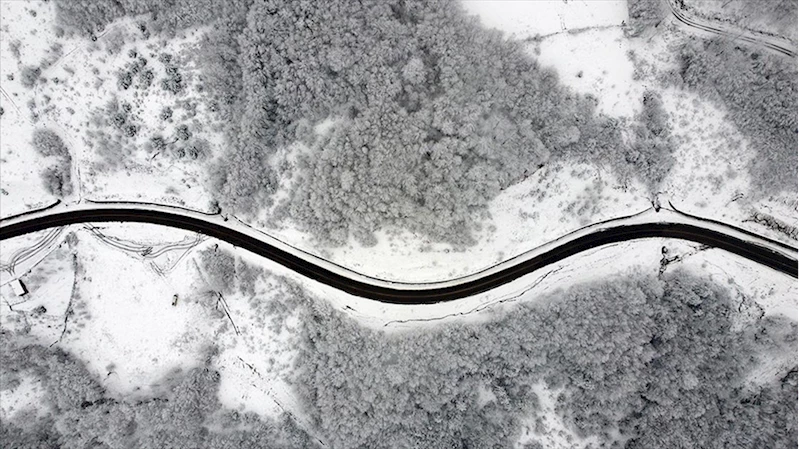 Çangal Dağı'nda kar yağışıyla oluşan kış manzaraları dron ile görüntülendi.