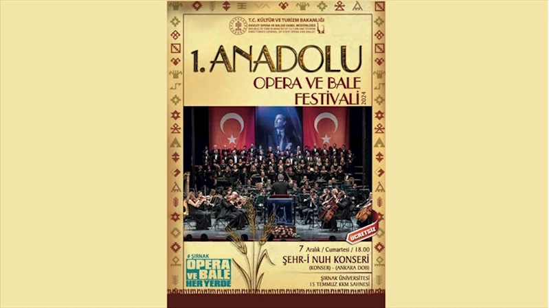 ANKARA (AA) - Devlet Opera ve Balesi Genel Müdürlüğü'nün bu yıl ilk kez düzenleyeceği Anadolu Opera ve Bale Festivali, Şırnak Valiliği ve Şırnak Üniversitesinin katkılarıyla birçok medeniyetin zengin kültürel motiflerinden izler taşıyan, Anadolu'nun kadim şehri Şırnak'ta yapılacak.