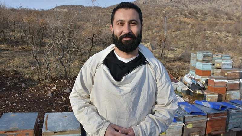 ŞIRNAK (AA) - Akademisyen eşinin tayini dolayısıyla 4 yıl önce Şırnak'a gelen Yusuf Göktepe, tanıştığı Mehmet Zeki Sidar'ın da önerisi ve kovan desteğiyle arıcılık yapmaya başladı.