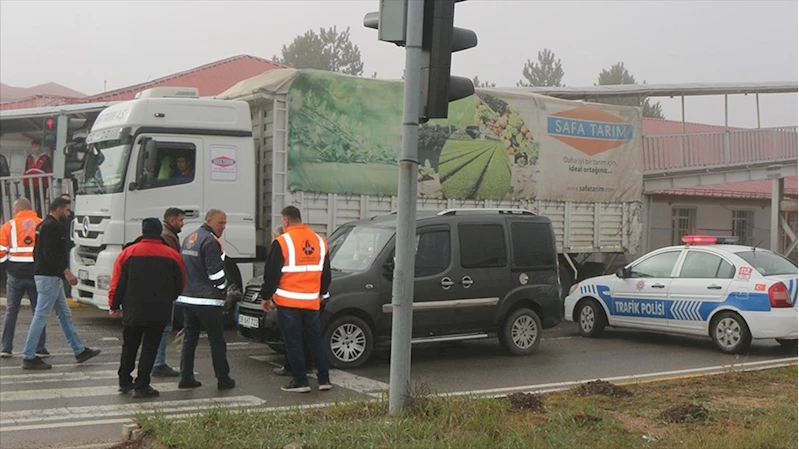SİVAS (AA) - S.B. (40) yönetimindeki 38 AHT 521 plakalı hafif ticari araç, Sivas-Kayseri kara yolu dört yol kavşakta kırmızı ışıkta bekleyen A.Ö. (34) idaresindeki 58 ES 521 plakalı kamyona çarptı.