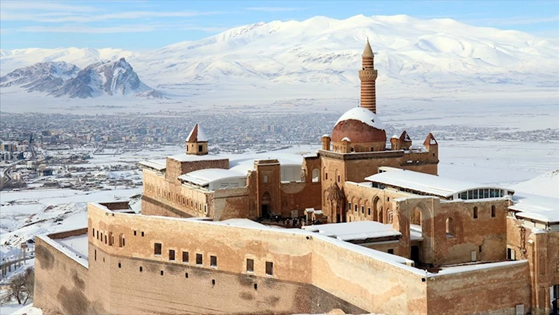 AĞRI (AA) - Türkiye'nin 5137 metreyle en yüksek dağı olan Ağrı Dağı'nın eteklerindeki ilçede yer alan İshak Paşa Sarayı ile çevresi karla kaplandı.