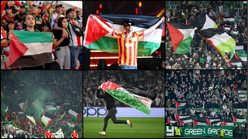 Fitili Celtic ateşlediTarihi boyunca aykırı duruşuyla dikkat çeken İskoç temsilcisi Celtic'in tribünleri, hem yerel lig hem UEFA Şampiyonlar Ligi maçlarında yaptıkları koreografi ve dalgalandırdıkları onlarca Filistin bayrağıyla dünya çapında dikkati çekmeyi başardı.