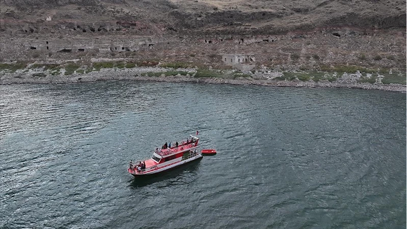 Su altında kalan yerleşim yerlerinin üzerinde yaklaşık 13 yıldır "Reis 38" isimli teknesiyle sefer düzenleyen Yılmaz, suların çekilmesiyle ortaya çıkan eski mahallesindeki yapılar hakkında ziyaretçilerine bilgi veriyor.