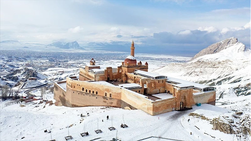 Tarihi İshak Paşa Sarayı martta karla kaplandı