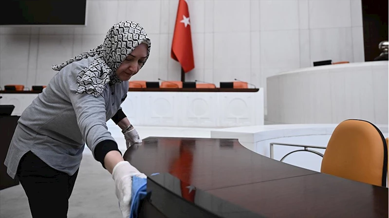 TBMM'de Ramazan Bayramı öncesinde hummalı temizlik çalışması yapılarak Meclis'in tüm alanları milletvekillerinin kullanımına hazır hale getirildi.