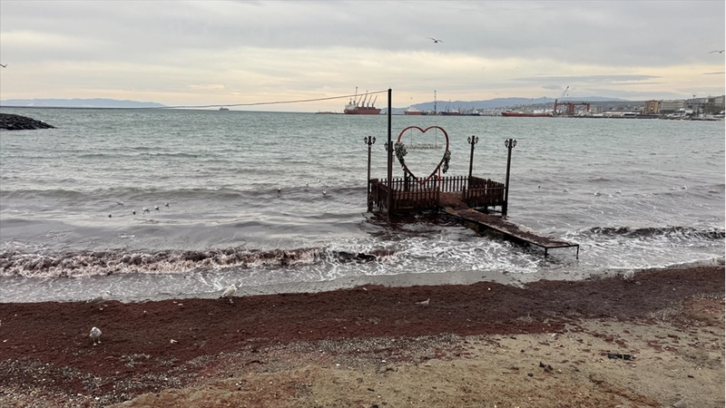 Sahildeki bazı alanlarda kırmızı yosun birikti.