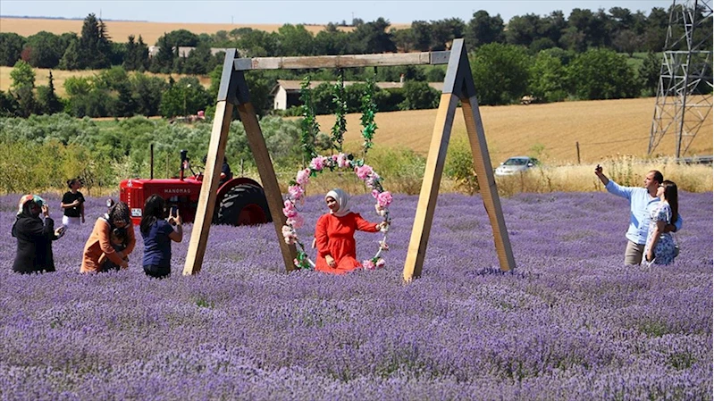 TEKIRDAĞ (AA) - Kentteki lavanta tarlaları bayramda da İstanbul ve yakın illerden gelenleri ağırlıyor. Ziyaretçiler, göz alıcı mor ve eflatun renkli tarlalarda hazırlanan özel dekorlar önünde en güzel fotoğraf karesini yakalamaya çalışıyor.