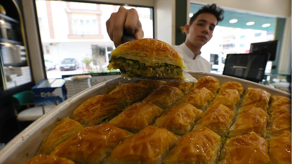 Baklava ustaları, talebi karşılamak için hummalı bir şekilde çalışmalarını sürdürüyor.