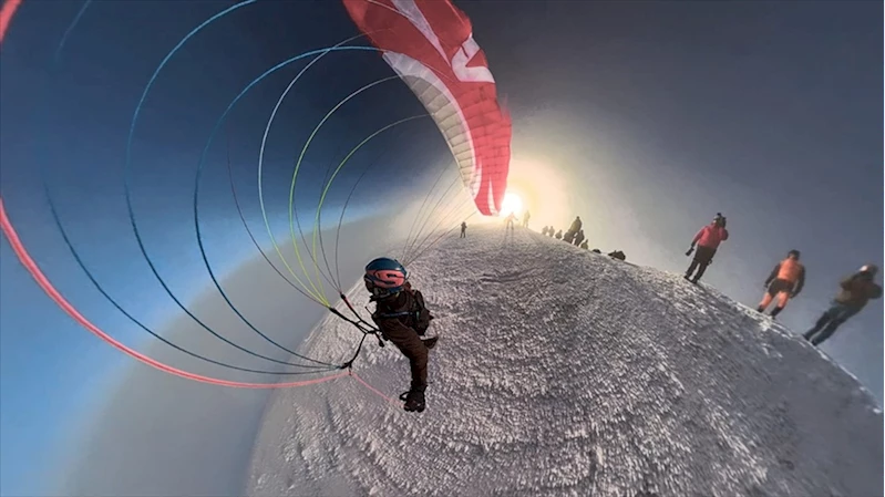 Zirveye tırmanmayı başaran sporculardan Abdullah Yıldız, 5 bin 137 rakımıyla Türkiye'nin en yüksek noktası olan Ağrı Dağı'nın zirvesinden yamaç paraşütü ile ovada bulunan Örtülü köyü mevkisine iniş yaptı.