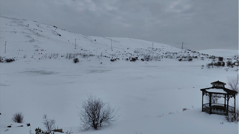Yüzeyi tamamen donan gölet ve çevresi, güzel görüntü oluşturdu.