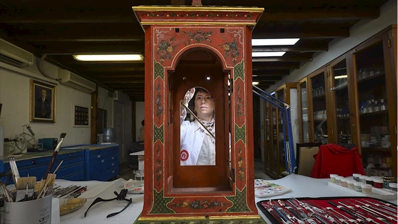 "Geri alınabilir boyalarla estetik bütünlüğünü sağlıyoruz"Kalemkar Demet Buldu ise saray koleksiyonuna ait nadir eserlerin ömrünü uzatmak için konservasyon çalışmaları yaptıklarının altını çizerek, "İlk olarak eserdeki malzemeleri ve sorunları tespit ettikten sonra fotoğraflama ve belgeleme işlemlerini yapıyoruz. Eseri tahrip eden unsurları belirledikten sonra ona en uygun malzemeyle konservasyon işlemini gerçekleştiriyoruz." dedi.