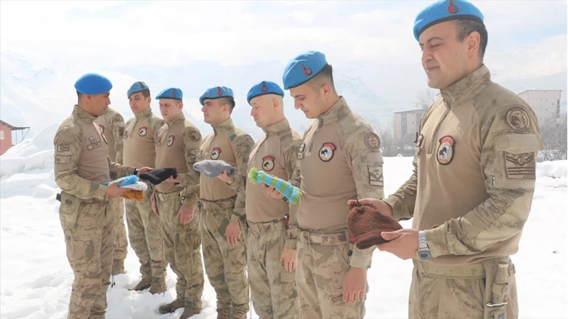 Kahveci'nin gönderdiği el emeği göz nuru bereler, kentte görev yapan jandarma personeline dağıtıldı.