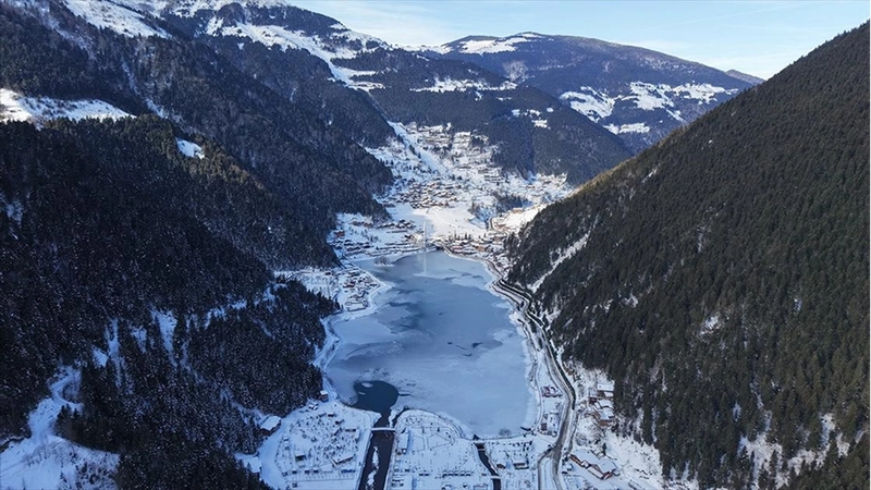 Doğal güzelliğiyle öne çıkan Uzungöl, kışın da görülmeye değer manzarasıyla bölge turizmine katkı sağlamaya devam ediyor.
