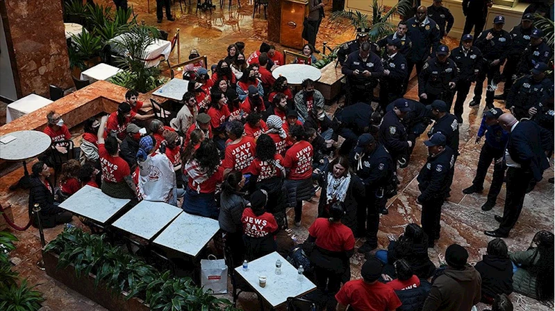 ANKARA (AA) - JVP üyeleri, Columbia Üniversitesi'nde İsrail'in Gazze'ye yönelik saldırılarının kınandığı gösterilere öncülük eden Halil'in gözaltına alınmasına tepki göstermek amacıyla New York'taki Trump Tower'da toplandı.