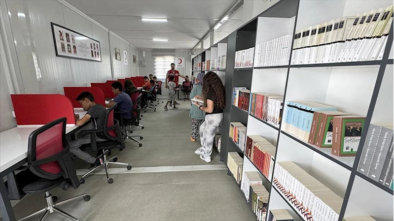 Deprem bölgesindeki öğrencilere uygun bir ders çalışma ortamı sağlamak için seferberlik başlatan Türk Kızılay, bağışçılarının desteğiyle merkez Antakya ilçesindeki Güzelburç Konteyner Kenti'nde 130 metrekare alana kütüphane kurdu.