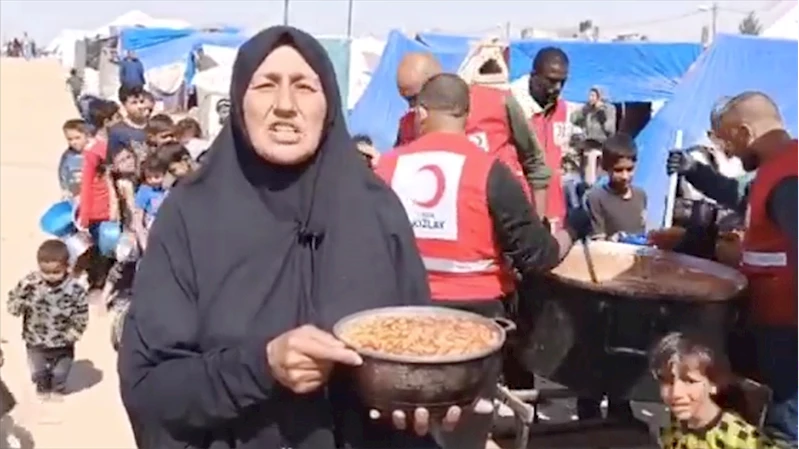 Dağıtılan yemeği alan Gazzeli bir kadının teşekkür konuşmasının da yer aldığı paylaşımda, "Gazze'den bir ses var. Hakikatin sesi. Türkiye'ye, hayırseverlerimize, kaygısı Gazze ve Gazze halkı olanlara geliyor bu mesaj. Sensiz olmaz." ifadeleri kullanıldı.