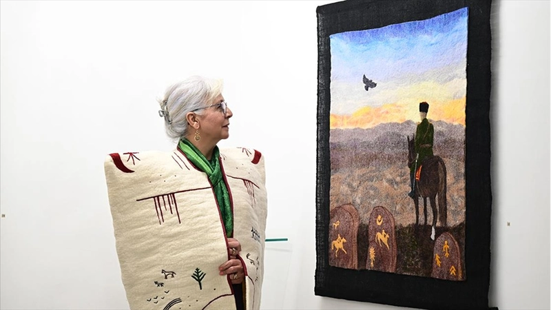 Türk medeniyetinin binlerce yıllık kaya resimleri keçeyle sanata dönüştü
