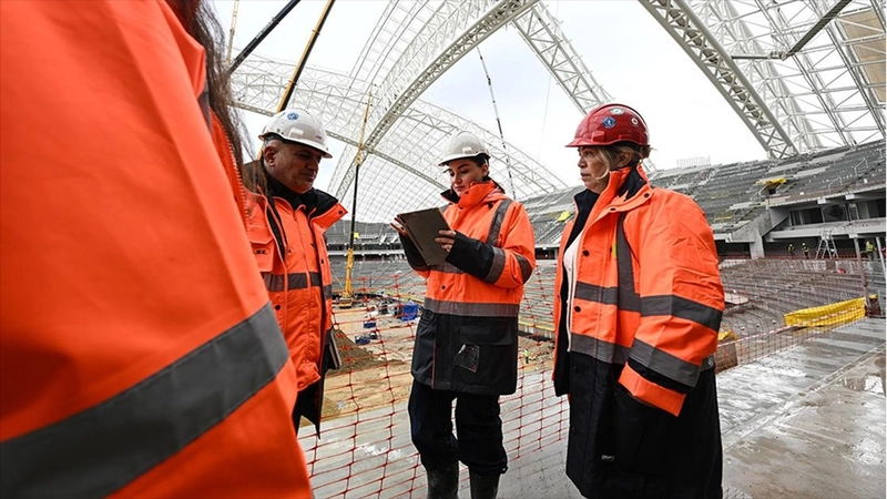 "1000 kişi çalışıyor, ciddi oranda kadın çalışanımız da var"Stadın TOKİ tarafından yaptırıldığını hatırlatan Akar, "TOKİ'nin bu prestijli inşaatında ortalama 1000 kişi çalışıyor, diğer inşaatlarla kıyasladığımız da ciddi oranda kadın çalışanımız da var. Burada 50'nin üzerinde devasa vinç çalışıyor, bu vinçlerin en büyüğü 1600 tonluk, çok şükür bugüne kadar bir kaza da yaşamadık. İnşallah bundan sonra da yaşanmaz, iş sağlığı güvenliğine çok önem veriyoruz. Bu konuda çok titiziz." şeklinde konuştu.