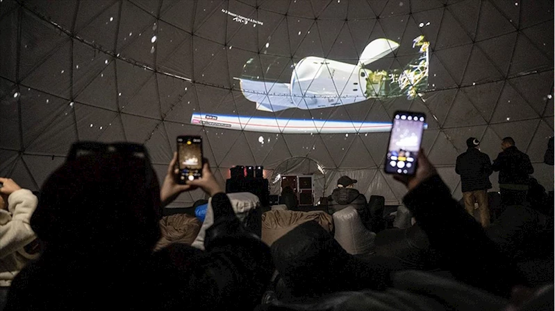 İSTANBUL (AA) - Türkiye'nin insanlı ilk uzay görevini gerçekleştiren Gezeravcı'yı taşıyan uzay aracının Uluslararası Uzay İstasyonu'na kenetlenmesi, Sanayi ve Teknoloji Bakanlığı tarafından kurulan Taksim Meydanı'ndaki "dome çadır" adlı, dev kubbeli planetaryumdan vatandaşlar tarafından takip edildi.