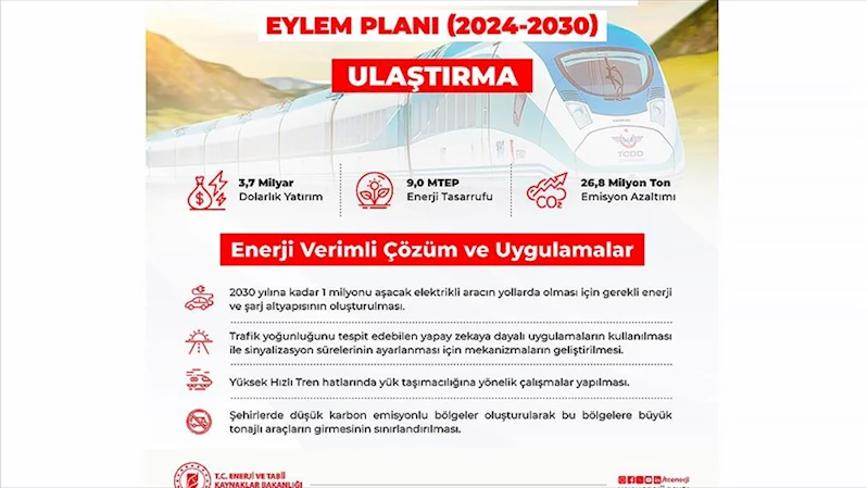 Buna göre, söz konusu dönemde ulaştırma sektöründe enerji verimliliğini artırmak için toplam 3,7 milyar dolarlık yatırım yapılacak.