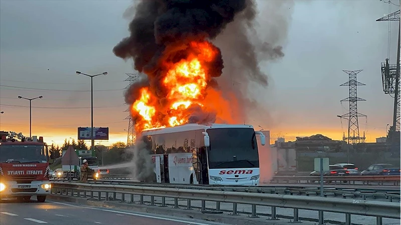 İSTANBUL (AA) - TEM Otoyolu Dudullu mevkisinde seyir halindeki 28 NB 801 plakalı özel şirkete ait yolcu otobüsünün motor kısmında yangın çıktı.