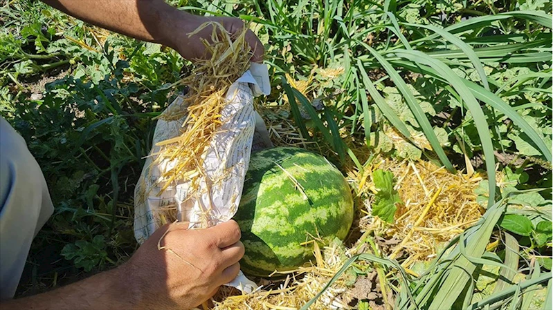 Üreticiler karpuzu aşırı sıcaktan gazete ve samanla koruyor