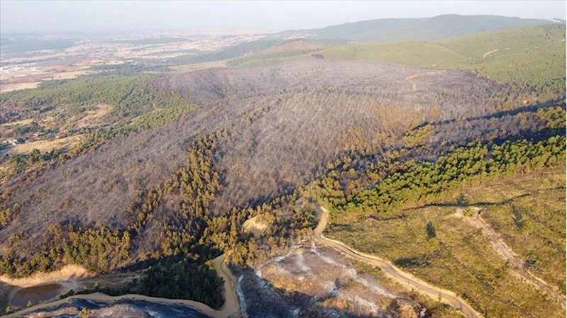 Öte yandan yanan alanlar, dronla görüntülendi.