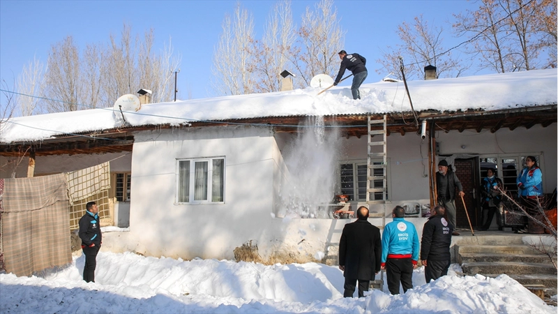 Yoğun yağıştan sonra evlerin çatılarında biriken karı da atan ekipler, ihtiyaç sahibi vatandaşların ulaşımını daha rahat sağlamaları için küreklerle evlerinin önünü açıyor, odun kırarak sobalarını yakıyor.