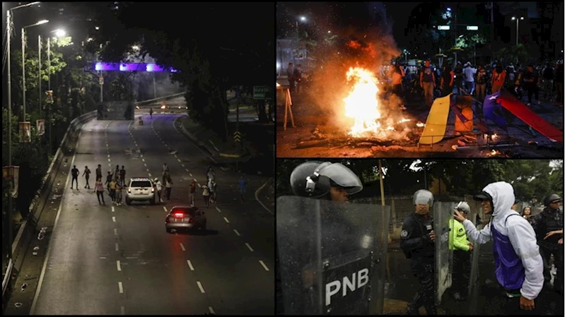 Başkent Karakas'ın çeşitli noktalarında toplanan onlarca kişi, yollarda ateş yakarak, güvenlik güçlerine taş attı.