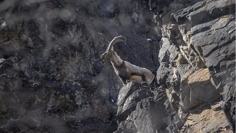 Yaban keçileri Munzur Vadisi'nde yiyecek ararken görüntülendi