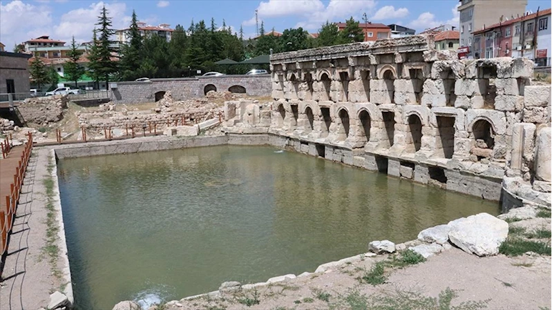 YOZGAT (AA) - Mimarisi ve 50 derece sıcaklıkta 2 bin yıldır akan termal suyuyla öne çıkan tarihi hamamda, Yozgat Müze Müdürlüğü gözetiminde 2022'de başlatılan çevre düzenleme çalışmaları tamamlandı. Yaklaşık iki yıldır kesik olan termal su tekrar havuza verildi, hamam yeni ışıklandırma sistemiyle de geceleri farklı bir görüntüye kavuştu.