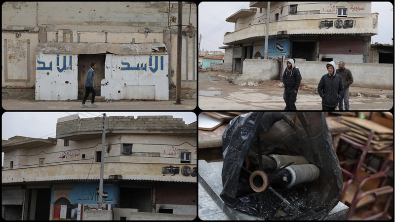 Beldenin girişinde YPG'nin kurduğu kontrol noktaları ile binaların pencerelerine dizilmiş çuvallarla oluşturulan mevziler hâlâ duruyor. Esed rejiminin bölgeyi kontrol ettiği döneme ait Esed yanlısı sloganlar ile rejimin iki yıldızlı Suriye bayrakları da duvarlarda görülüyor. Kent merkezinde ise YPG'nin konuşlandığı bir noktada, hazırlanmış ancak tuzaklanmamış el yapımı patlayıcılar bulunuyor.