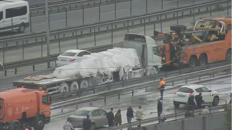 Zeytinburnu’nda tırdan dökülen alçı nedeniyle D-100 kara yolunda yoğunluk yaşandı