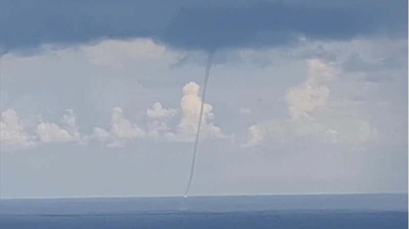 Sahilden görülen hortum, vatandaşlar tarafından cep telefonu kamerasıyla kaydedildi.