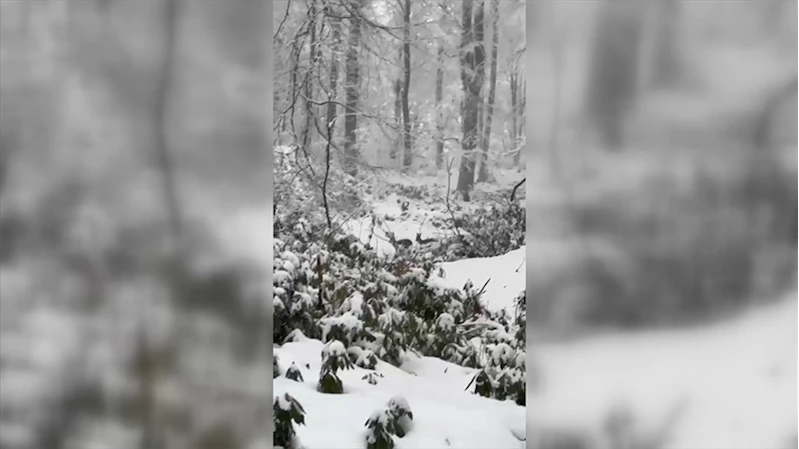 Zonguldak'ta karla kaplı ormanda gezinen karacalar cep telefonuyla görüntülendi