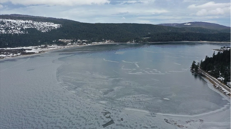 BOLU (AA) - Kent merkezine yaklaşık 35 kilometre uzaklıkta bulunan milli parkta hava sıcaklıklarının gece eksi derecelere düşmesiyle gölün yüzeyi kısmen buz tuttu.