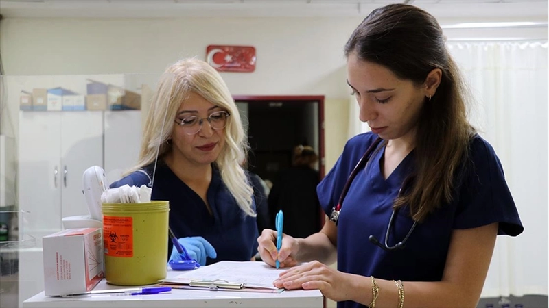 Yaklaşık 5 ay önce hemşire annesinin görev yaptığı hastaneye atanan pratisyen hekim Ece Nur Ayyıldız, acil serviste annesiyle hastalara hizmet veriyor.