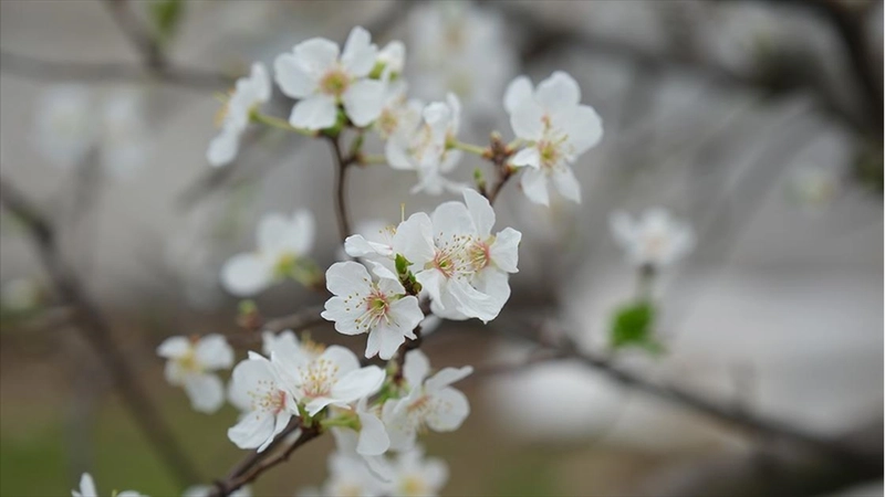 MERSIN (AA) - Yaş meyve ve sebze üretimiyle öne çıkan ilçedeki seralarda, çiçek açan erik ağaçları beyaza büründü.